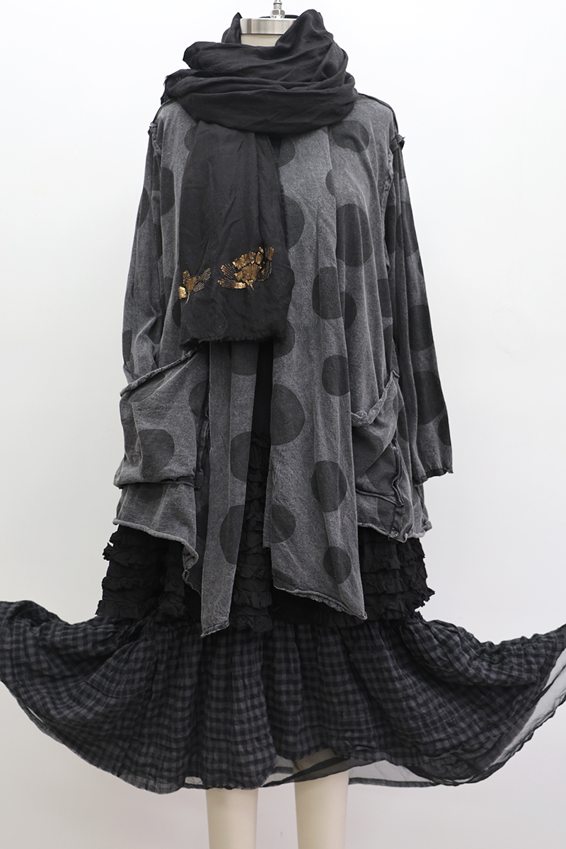 - 100% Printed Lightweight Cotton Jersey, Faded Black Polka Dot