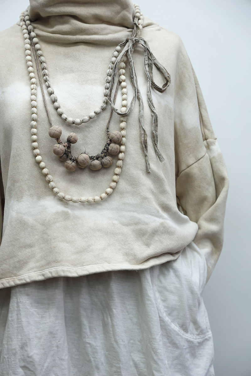 - Random vertical stitched tucks