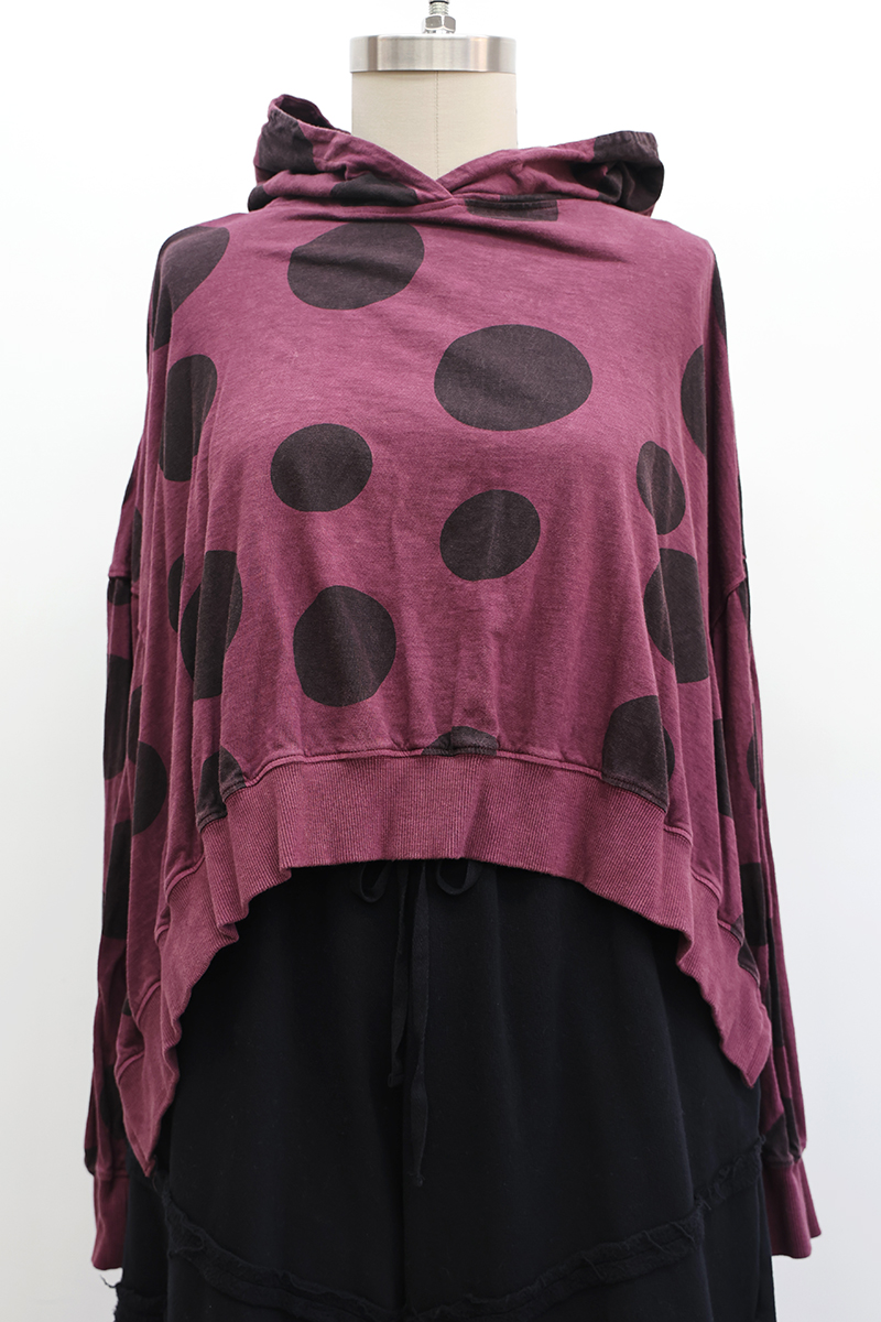 - 100% Printed Lightweight Cotton Jersey, Merlot Polka Dot