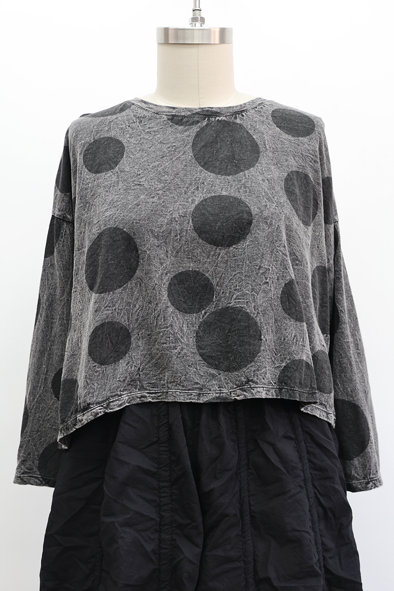 - 100% Printed Lightweight Cotton Jersey, Faded Black Polka Dot