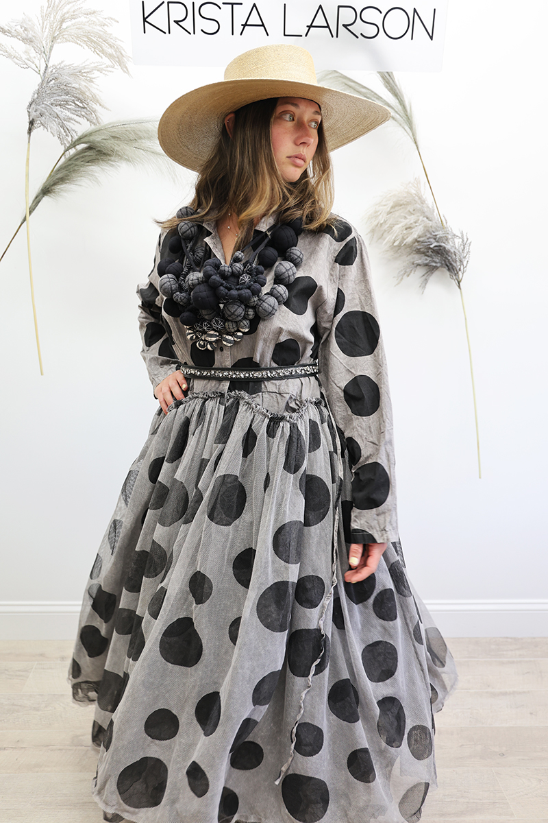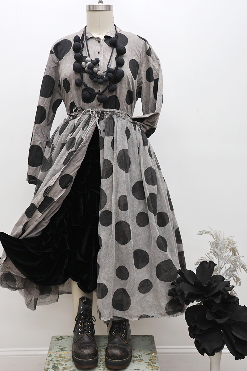 - 100% Printed Cotton Broadcloth, Ash Polka Dot