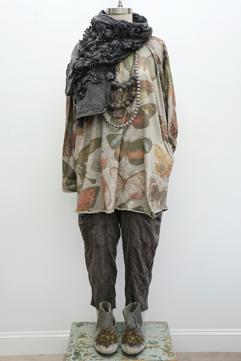 - 100% Printed Lightweight Cotton Jersey, Gray Faded Butterfly