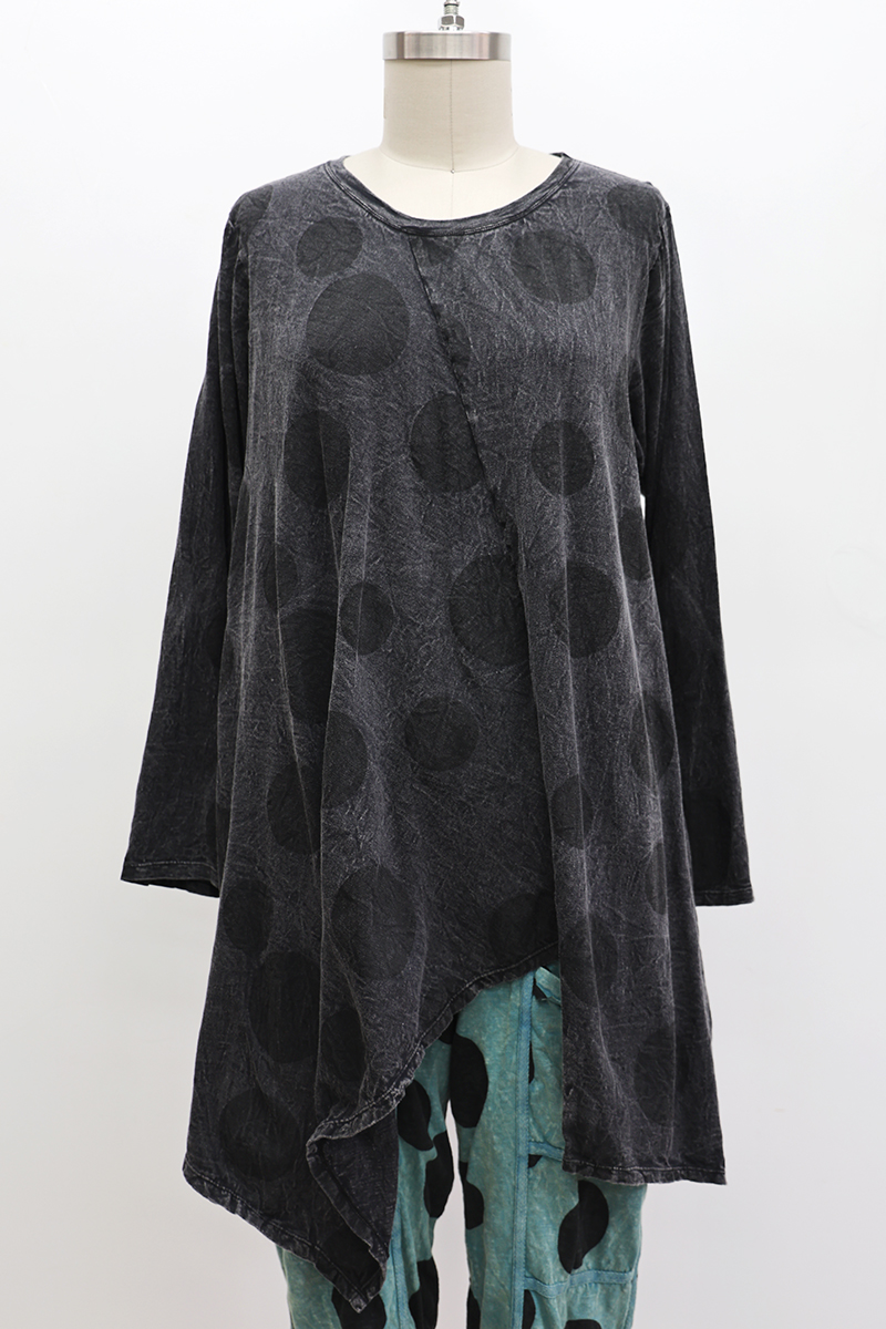 100% Printed Lightweight Cotton Jersey, Faded Black Polka Dot