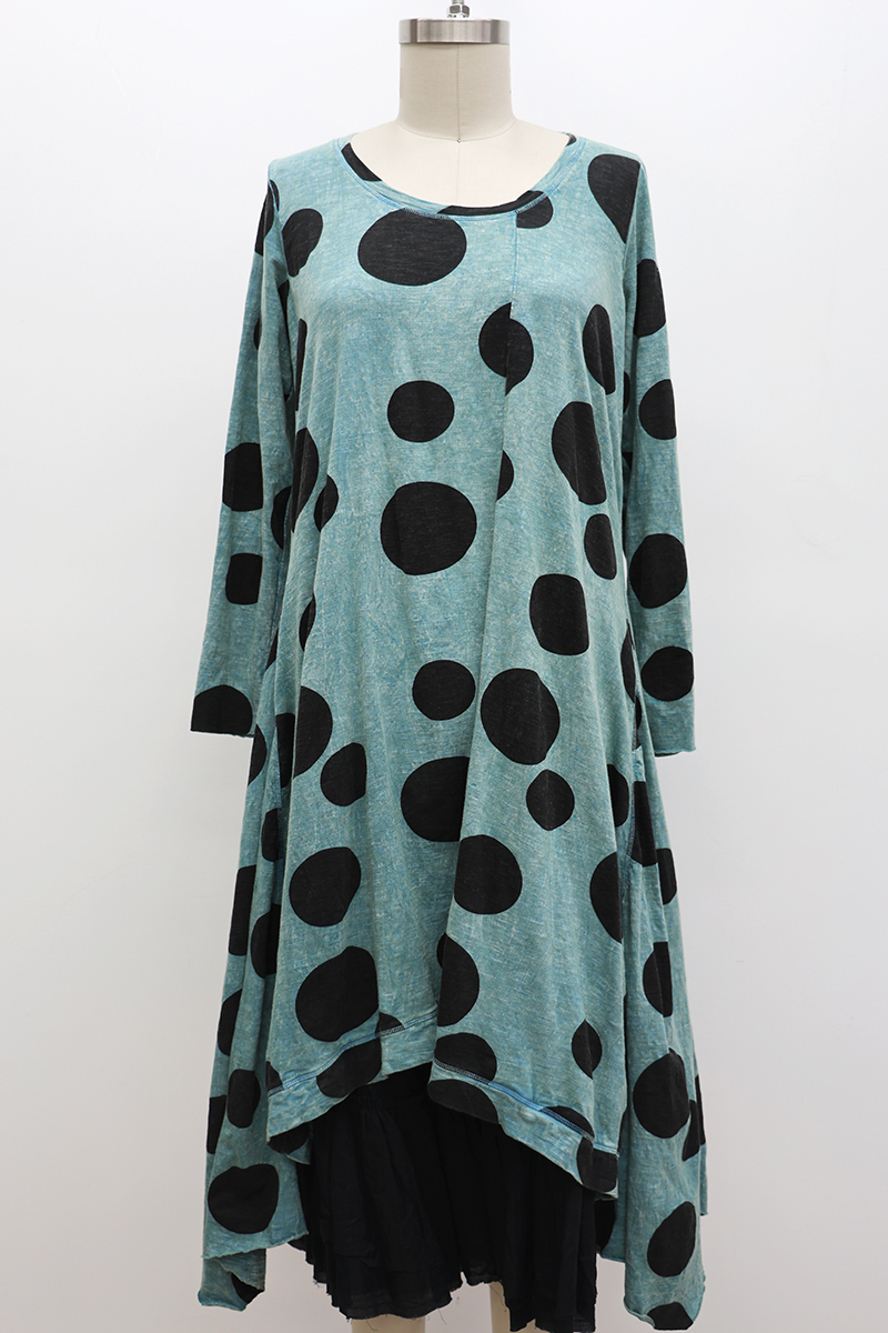 - 100% Printed Lightweight Cotton Jersey, Eucalyptus Polka Dot