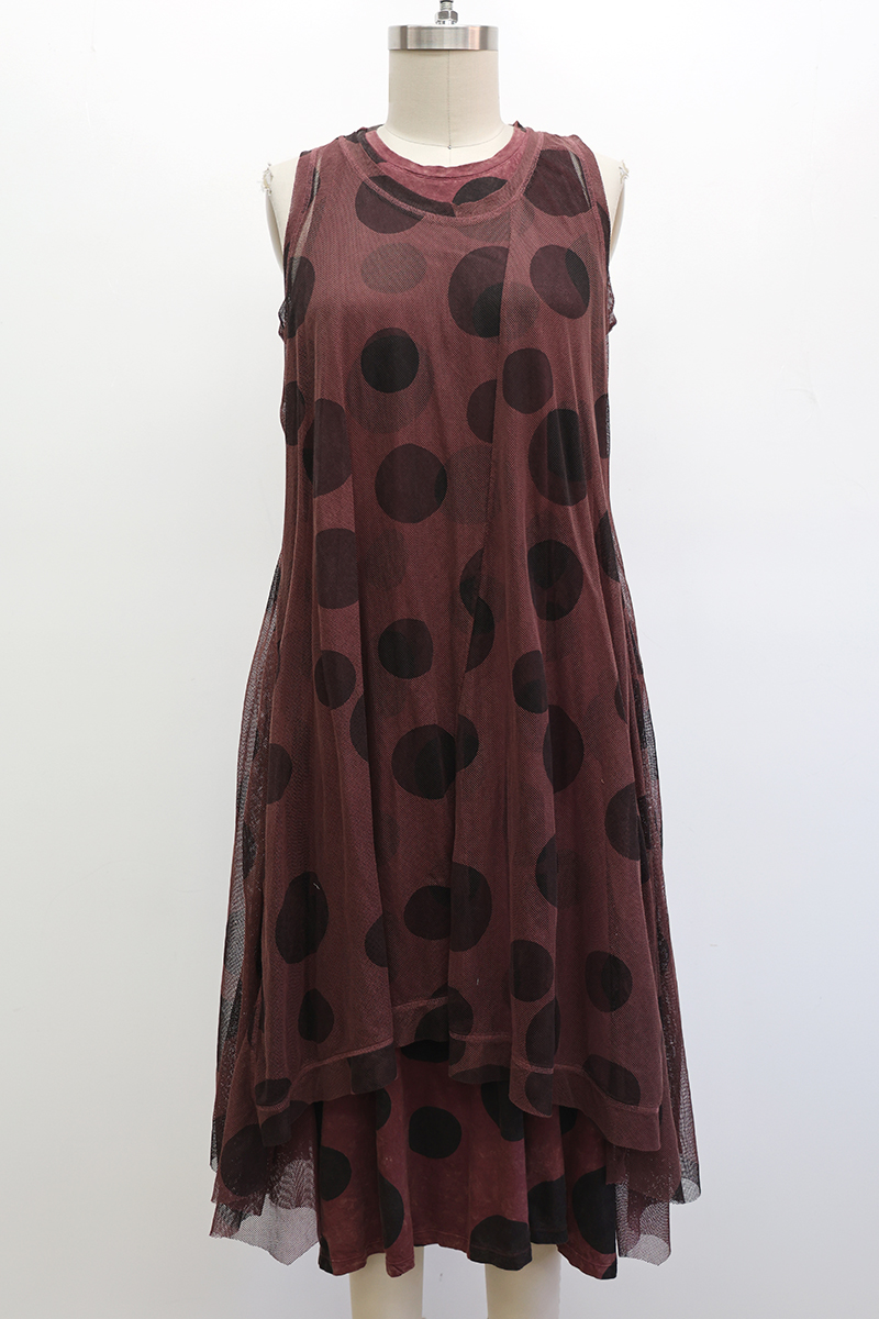 - 100% Printed Cotton Tulle, Mahogany Polka Dot