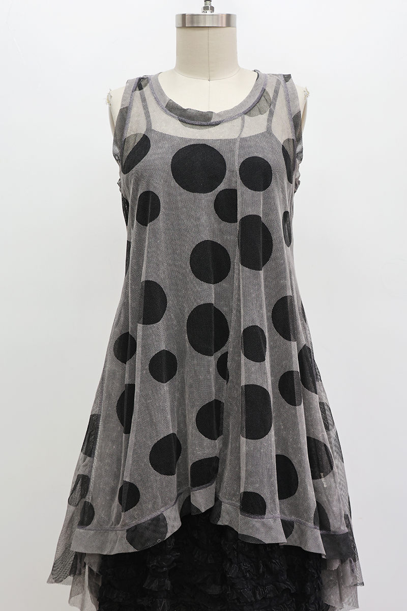 - 100% Printed Cotton Tulle, Ash Polka Dot