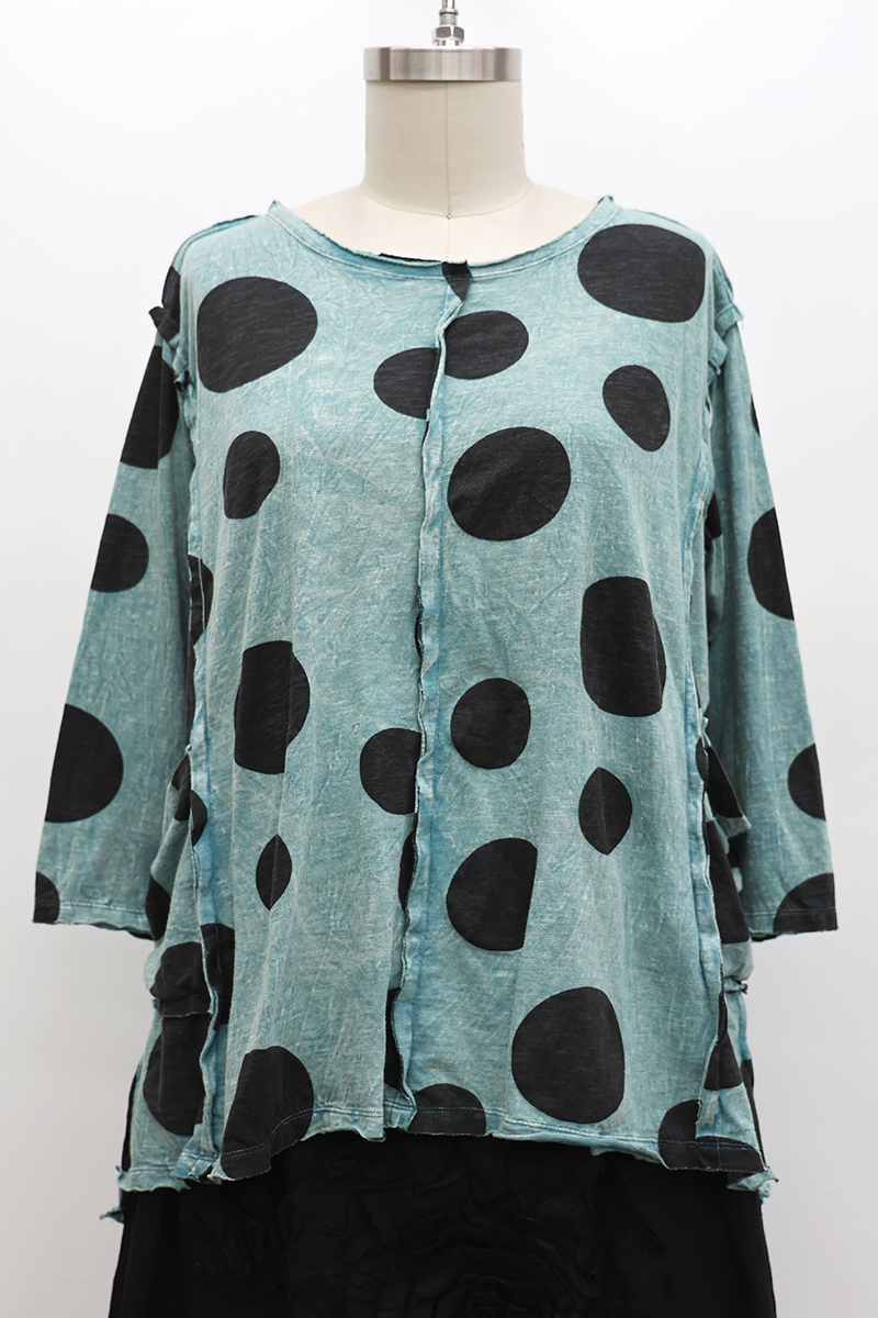 - 100% Printed Lightweight Cotton Jersey, Eucalyptus Polka Dot