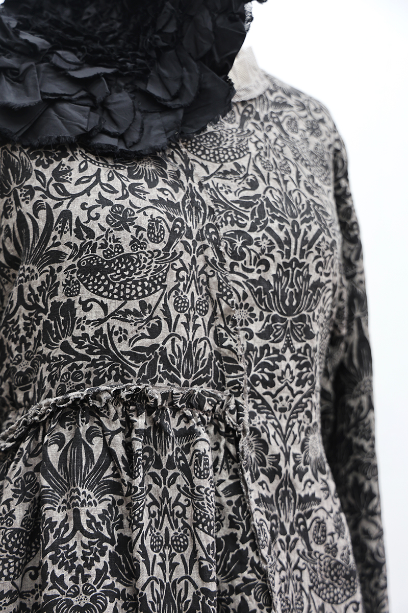 - 100% Printed Linen, Ash Black Bird